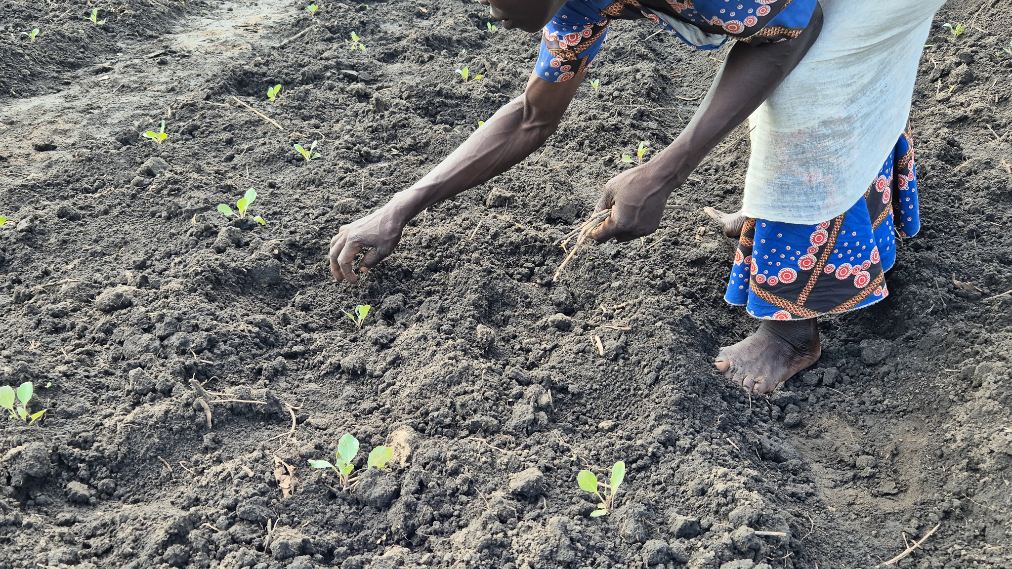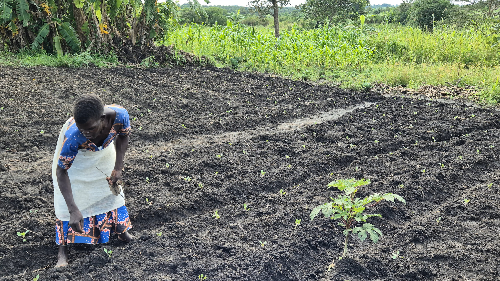 ADRAn kotikäynnillä Evelyn sai käytännön opetusta siitä, miten kasteltua maata hoidetaan ja suojataan kuivan kauden aikana. Hän oppi mm. multauksen, veden säästömenetelmiä ja pienten kastelukanavien käytön. Näiden taitojen avulla Evelyn on voinut laajentaa puutarhaansa ja kasvattaa perheen tuloja.