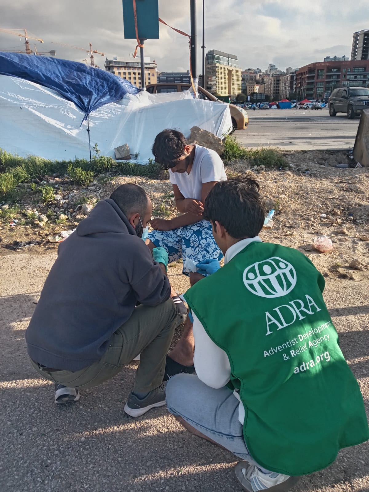 Vapaaehtoiset antoivat vettä, hoitivat lasten haavat ja kirjasivat perheen jatkoavun piiriin, jotta he saisivat peittoja ja muita välttämättömiä tarvikkeita.